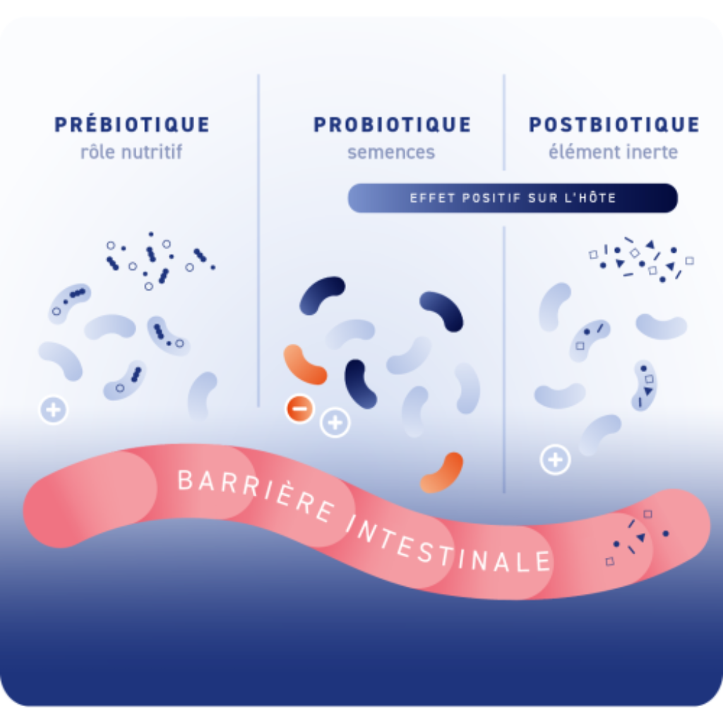 Les postbiotiques contribuent à la santé globale de l’intestin en favorisant un microbiote équilibré et diversifié.